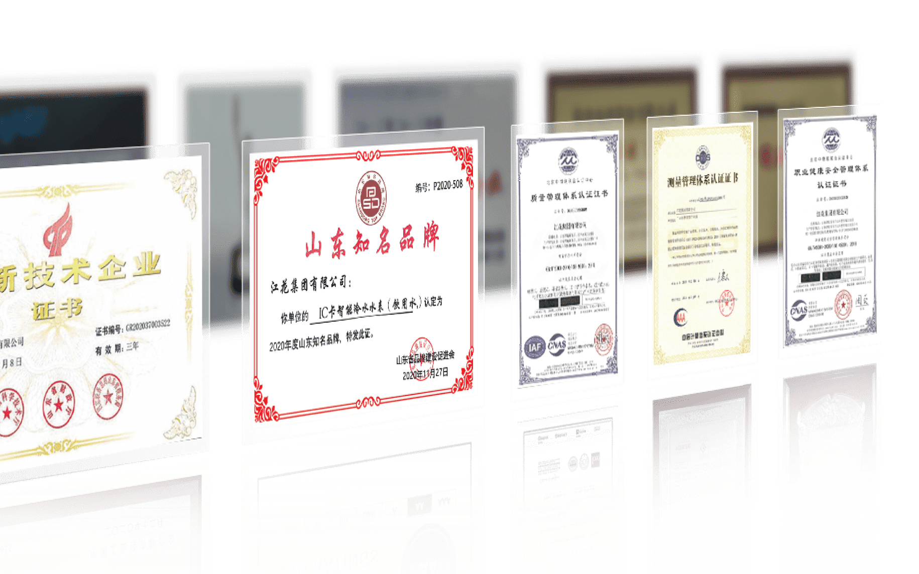 公司主營智能水表、熱量表的研發與制造,“江花牌”水表嚴格按照國家標準GB/T778.1~5-2018及國家檢定規程JJG162-2019有關規定生產,并通過ISO9001質量管理體系認證、ISO14001環境管理體系認證、OHSAS18001職業健康安全管理體系認證、GB/T19022-2003/ISO 10012:2003測量管理體系認證、ISO/IEC20000-1:2018信息技術服務管理體